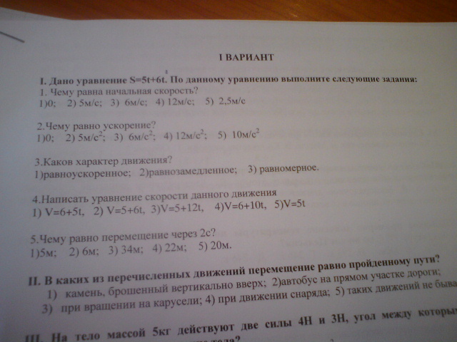 1.1 5м/c 1.2 6м/с в квадрате 1.3 равноускоренное 1.4 v=v0 + at ( 5+6t ) 1.5 34 м |